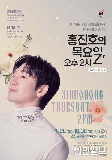한민일보 서울포커스 백진욱 기자 | 인천 동구문화체육센터가 처음 선보이는 마티네 콘서트 '목요일, 오후 2시'가 오는 25일 오후 2시 동구문화체육센터 공연장에서 개최된다. 이번 마티네 콘서트는 9월과 10월, 총 2회의 공연으로 진행되며, 첼리스트 홍진호의 친절하고 섬세한 진행과 함께 공연마다 매력적인 아티스트들의 무대를 만날 수 있다.