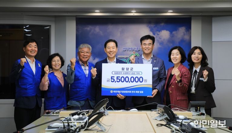 이날 기탁식에는 김정기 경상남도 협의회장을 비롯해 정수인 사무처장, 정종철 사무국장, 서장원 함양군 명예회장, 노인순 여성회장, 이시윤 사무과장이 함께 자리했으며, 이번 성금은 갑작스러운 자연재해로 어려움을 겪고 있는 이웃들에게 작은 힘이 되길 바라는 마음을 담았다.