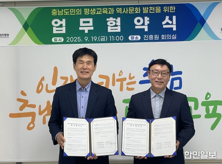 한민일보 서울포커스 박덕환 기자 | 충남역사문화연구원과 충남평생교육인재육성진흥원이 도민의 지역사 이해와 평생교육 활성화를 위해 업무협약(MOU)을 체결했다.