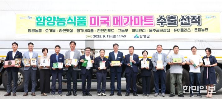 한민일보 서울포커스 김서윤 기자 | 함양군은 19일 함양읍 함양농협 가공사업소에서 함양 농식품 34종, 총 9,100만 원 규모를 미국 메가마트에 수출하는 선적식을 개최했다고 밝혔다.
