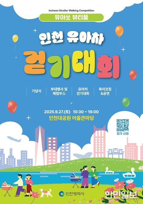 한민일보 서울포커스 유창렬 기자 | 인천광역시는 오는 9월 27일 인천대공원 어울큰마당에서 ‘2025년 인천 유아차 걷기대회’ 를 개최한다고 밝혔다