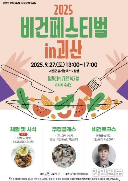 한민일보 서울포커스 김다남 기자 | 충북 괴산군은 오는 27일 오후 1시부터 5시까지 유기농엑스포광장에서 ‘2025 비건페스티벌 in 괴산’을 개최한다고 22일 밝혔다.