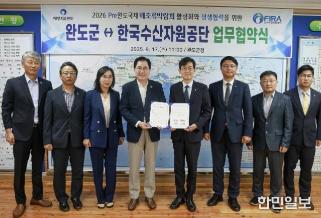 한민일보 서울포커스 박용남 기자 | 완도군은 한국수산자원공단과 26 Pre완도국제해조류박람회의 성공 개최와 2050 탄소중립 국가정책 실현을 위한 업무 협약을 체결했다.
