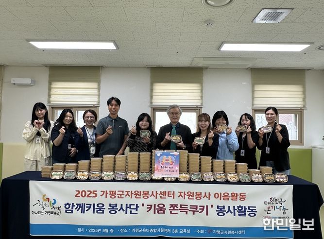한민일보 서울포커스 최성훈 기자 | 가평군자원봉사센터는 지난 9월 16일 오전 10시부터 12시까지 가평군 육아종합지원센터 3층 교육실에서 '자원봉사 이음활동'의 일환으로 함께키움봉사단이 ‘키움쫀득쿠키’ 만들기 봉사활동을 진행했다.