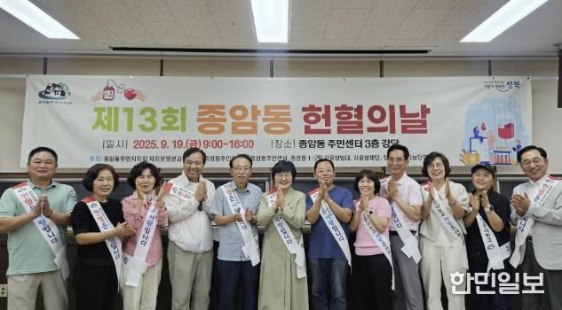 한민일보 서울포커스 김봉순 기자 | 성북구 종암동주민자치회가 지난 19일 종암동주민센터 3층 이육사홀에서 ‘제13회 종암동 헌혈의 날’ 행사를 열었다. 행사에는 자율방범1·2팀, 자율방재단, 청년회 등 종암동 직능단체가 함께 참여했다.