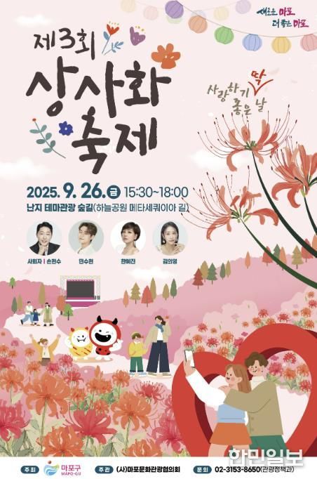 한민일보 서울포커스 박정민 기자 | 마포구는 9월 26일 난지 테마관광 숲길에서 ‘사랑하기 딱 좋은 날’이라는 주제로 (사)마포문화관광협의회 주관 ‘제3회 마포구 상사화 축제’를 개최한다.