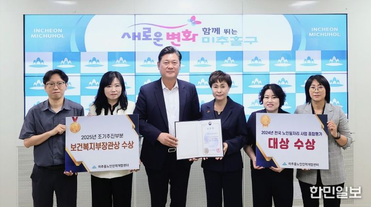 한민일보 서울포커스 백진욱 기자 | 인천 미추홀노인인력개발센터(센터장 김태화)는 지난 22일 웨스턴조선서울에서 열린 ‘2025년 노인 일자리 주간 기념식’에서 보건복지부 장관 표창이자 최고 영예인 ‘대상’을 수상했다.