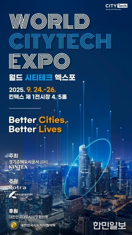 한민일보 서울포커스 김윤이 기자 | 경기주택도시공사(GH)는 9월 24일부터 26일까지 고양 킨텍스(KINTEX)에서 도시 기술의 미래를 직접 보고 체험할 수 있는 ‘2025 월드 시티테크 엑스포(World CITYTech Expo 2025)’를 개최한다고 23일 밝혔다.