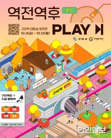 한민일보 서울포커스 김봉순 기자 | 구미시와 (재)구미문화재단(대표이사 이한석)은 오는 10월 3일부터 12일까지 10일간 구미역 일대에서 '추석은 구미역에서' 행사를 개최한다. 이번 행사는 구미를 찾는 귀성객과 관광객들에게 풍성한 명절 분위기를 선사하고, 지역문화와 특색을 널리 알리기 위해 마련됐다.