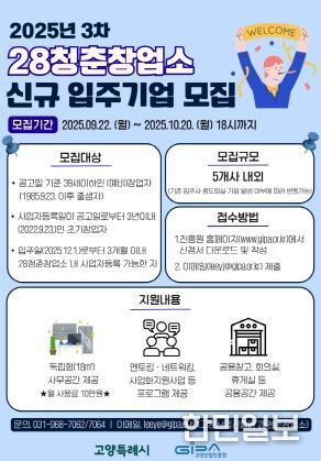 한민일보 서울포커스 김은금 기자 | 고양특례시가 조성하고 고양산업진흥원이 운영하는 ‘28청춘창업소’가 10월 20일까지 3차 신규 입주기업을 모집한다.