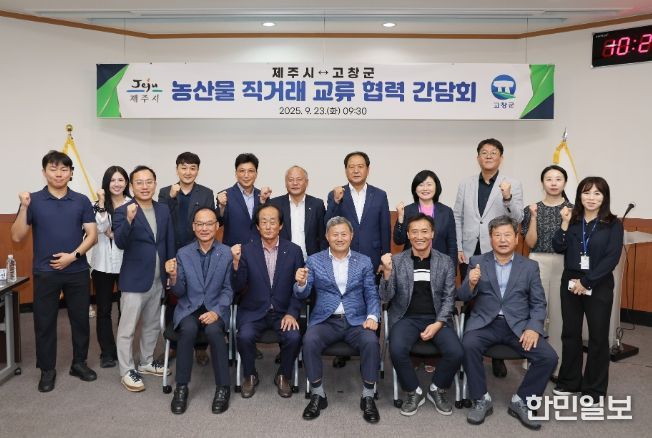 한민일보 서울포커스 김다남 기자 | 제주시는 9월 23일 시청 본관 회의실에서 고창군 관계자들과 함께 ‘농산물 직거래 확대를 위한 협력 간담회’를 개최했다.