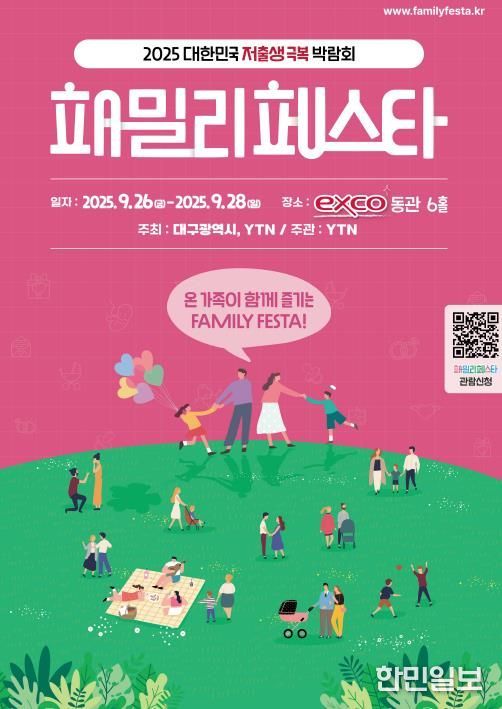 한민일보 서울포커스 김봉순 기자 | 대구광역시는 9월 26일부터 28일까지 3일간, 대구 엑스코 동관에서 ‘2025 패밀리페스타 대구 & 여성UP포럼’을 동시 개최한다.