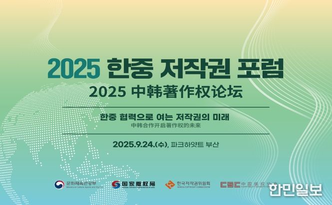한민일보 서울포커스 박용남 기자 | 문화체육관광부는 한국저작권위원회, 중국 국가판권국과 함께 9월 24일, 파크하얏트 부산에서 ‘2025 한중 저작권 정부간회의(오전)’와 ‘2025 한중 저작권 포럼(오후)’을 열어 저작권 보호를 위한 양국 협력 방안과 인공지능(AI), 블록체인 등 기술 발전에 따른 저작권 정책 변화 및 대응을 논의한다.