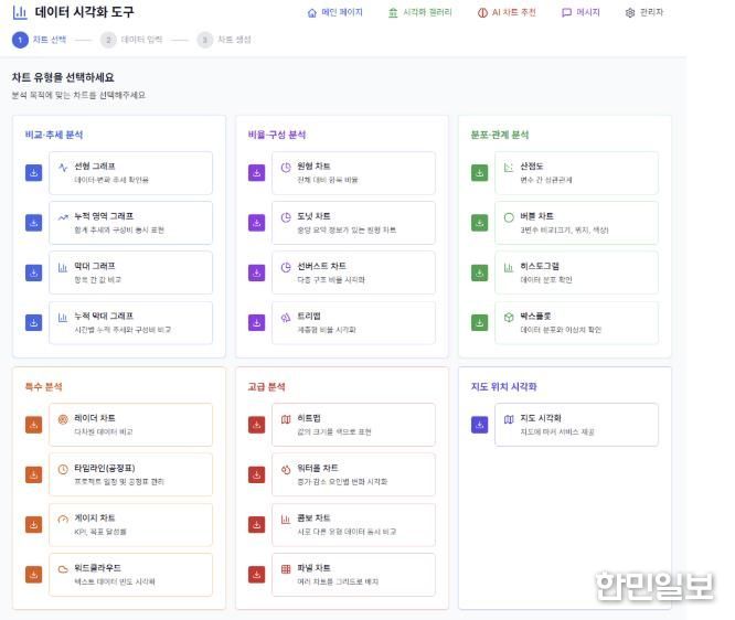 아울러 ‘AI 차트 추천 서비스’도 새롭게 도입했다. 이는 구에서 자체 개발한 기능으로, 엑셀 파일을 올리면 AI가 자동으로 데이터를 분석해 적절한 그래프를 추천하고 차트도 만들어 주는 서비스다. 21종의 그래프 예제를 제공하는 ‘시각화 갤러리’, 클릭 한 번으로 고품질 차트를 만드는 ‘시각화 생성 서비스’, 색상·레이블 등 개인 맞춤형 변경과 다운로드 기능도 지원한다. 향후, AI가 데이터 해석 코멘트까지 자동 생성하는 기능도 추가될 예정이다. 이를 통해 행정 보고서 작성과 의사결정이 한층 빨라지고, 부서 간 업무 기준도 표준화될 것이라고 구 관계자는 전했다.