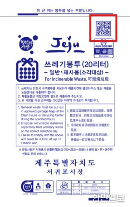 한민일보 서울포커스 김다남 기자 | 서귀포시는 QR코드가 인쇄된 가연성 종량제 봉투(20L) 4만 5천 매를 1차로 제작하여 9월 8일부터 편의점·소매점 및 대형마트 등 판매업체(632개소)에 공급을 시작했다.