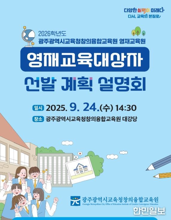 한민일보 서울포커스 박용남 기자 | 광주광역시교육청창의융합교육원이 2026학년도 초·중학교 영재교육 대상자 976명을 선발한다.