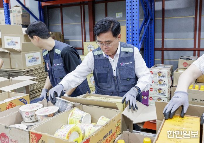 나눔 꾸러미에는 갈비탕, 잡채, 즉석밥과 같은 간편식부터 김부각, 약과 등 12종의 식품이 가득 담겼다.
