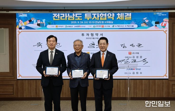 24일 전라남도청에서 전라남도와 영암군이, ㈜해진수산, ㈜해진식품과 투자협약을 체결하고 협력을 약속했다.