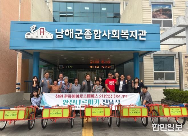 한민일보 서울포커스 김서윤 기자 | 남해군은 지난 24일 종합사회복지관 앞에서 창원 소재 한화에어로스페이스 2사업장으로부터 기탁받은 안전나르미카를 수혜자에게 전달했다고 밝혔다.