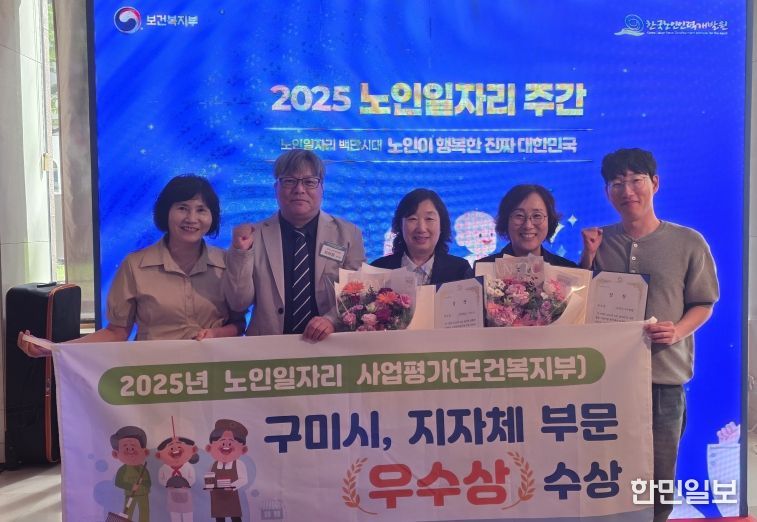 한민일보 서울포커스 김봉순 기자 | 구미시는 지난 22일 웨스틴 조선호텔에서 열린 보건복지부 주최 노인일자리 주간 기념식에서 ‘2025년 노인일자리 및 사회활동 지원사업 종합평가’ 기초지자체 부문‘우수상’을 수상했다.