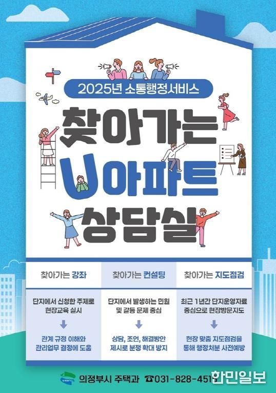 한민일보 서울포커스 심기옥 기자 | 의정부시는 지난해에 이어 공동주택 단지를 직접 찾아가는 소통 행정 서비스 ‘찾아가는 U아파트 상담실-차(茶)유담’을 운영하고 있다.