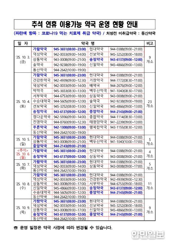 이는 추석 연휴 기간 고향을 방문한 귀성객들이 가족들과 건강한 명절을 보낼 수 있도록 응급의료기관 24시간 가동, 문 여는 병의원과 약국 지정, 응급환자 신속 대응 체계 강화로 의료공백을 최소화하기 위한 것이다.