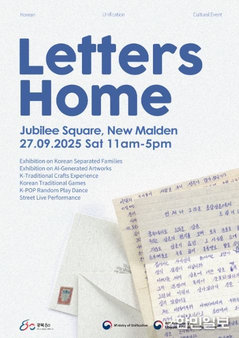 한민일보 서울포커스 박용남 기자 | 통일부는 9월 27일, 영국 최대 한인 밀집 지역인 뉴몰든에서 ‘Letters Home’(집으로 보내는 편지)을 주제로 한 재외동포 통일문화행사를 개최한다.