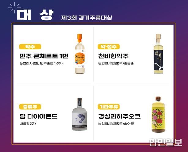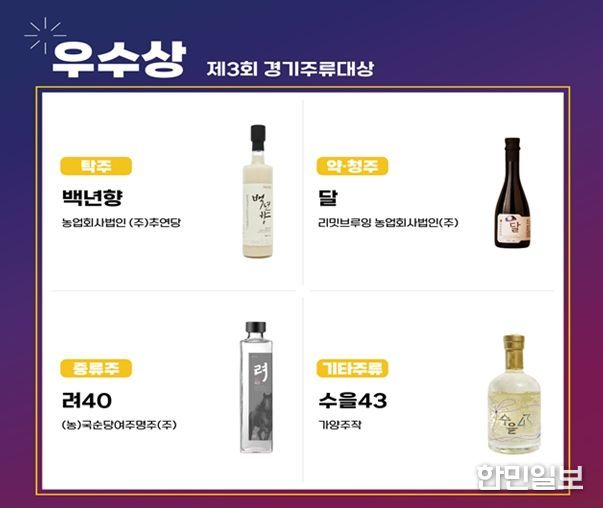 이번 대회에서 ㈜술아원의 ‘경성과하주오크’가 영예의 대상을 수상했고, 국순당여주명주㈜의 ‘려40’, ㈜추연당의 ‘백년향’이 각각 우수상을 차지했다. 대상·최우수상·우수상 등 총 12개의 상 가운데 여주시가 3개를 가져간 것이다. 단일 지자체가 3관왕에 오른 것은 여주시가 유일하다.
