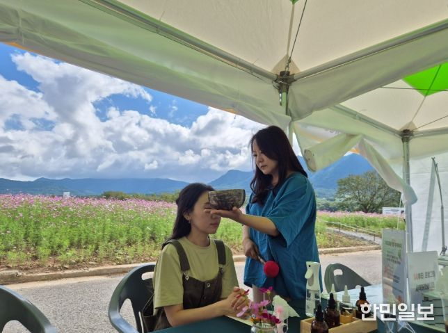 꽃단지 입구에서는 ‘치유on되는 여행지, 거창’을 주제로 치유프로그램 부스도 운영한다. 이 프로그램은 10월 12일까지 주말마다 진행되며, 거창군 공식 인스타그램 가조온천꽃단지 게시글에 ‘좋아요’와 댓글을 남긴 방문객은 아로마 향기 체험 등 치유프로그램을 즐길 수 있다.