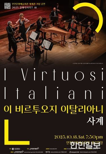 한민일보 서울포커스 유창렬 기자 | 인천광역시 문화예술회관이 전관 재개관을 기념해 10월 18일 인천문화예술회관 대공연장에서 2025 클래식 시리즈 세 번째 무대를 선보인다. 이탈리아를 넘어 국제적으로 명성을 쌓아온 ‘이 비르투오지 이탈리아니’를 초청해 환상적인 연주를 펼쳐 보인다.