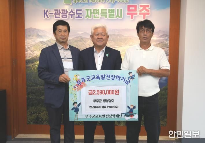 한민일보 서울포커스 박용남 기자 | 한국양봉협회 무주군지회가 지난 25일 (재)무주군교육발전장학재단에 장학금 259만 원을 기탁했다.