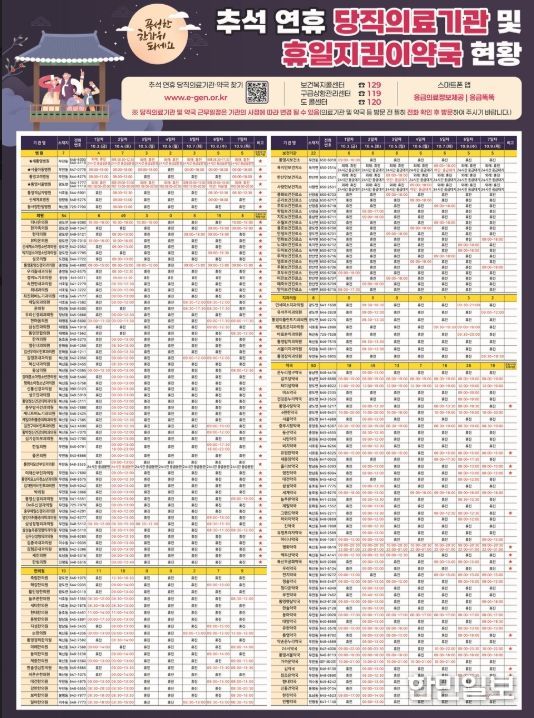 또한 연휴기간 내 보건(지)소 및 보건진료소는 당직진료일 지정, 비상진료체계를 유지하기 위한 24시간 응급진료상황실 운영을 통해 시민들의 응급진료에 공백이 발생하지 않도록 지원할 계획이다.