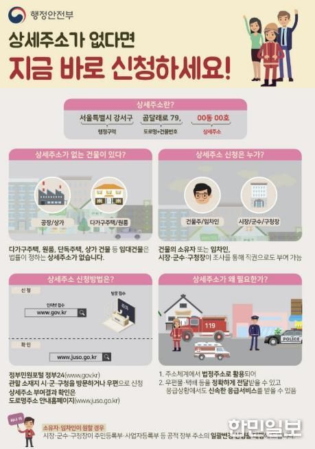 상세 주소는 건물주 또는 임차인이 정부24 또는 군청 민원과를 통해 신청이 가능하며, 이후 주민등록 정정 신고를 통해 법정 주소로 사용할 수 있다. 기타 자세한 사항은 군청 민원과로 문의하면 안내받을 수 있다.