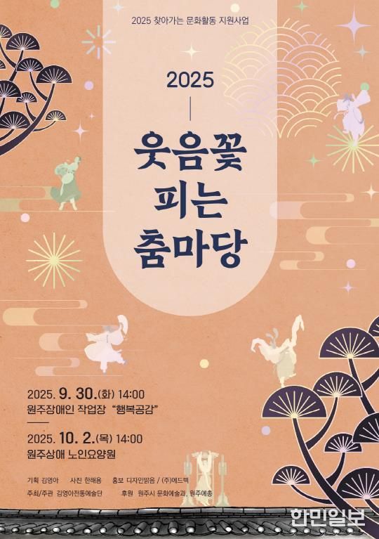 한민일보 서울포커스 임경복 기자 | 김영아전통예술단은 9월 30일과 10월 2일, 원주시 장애인작업장 행복공감과 상애노인요양원에서 전통춤과 창작 무용을 결합한 특별한 공연을 선보인다.