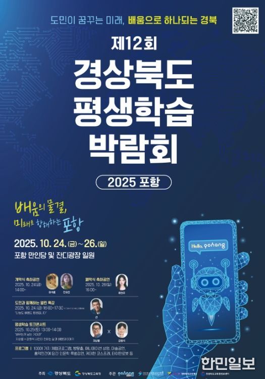 한민일보 서울포커스 임철현 기자 | 경북교육청은 10월 24일부터 26일까지 3일간 포항시에 있는 만인당과 잔디광장 일원에서 ‘제12회 경상북도 평생학습박람회–2025 포항’을 개최한다고 26일 밝혔다.