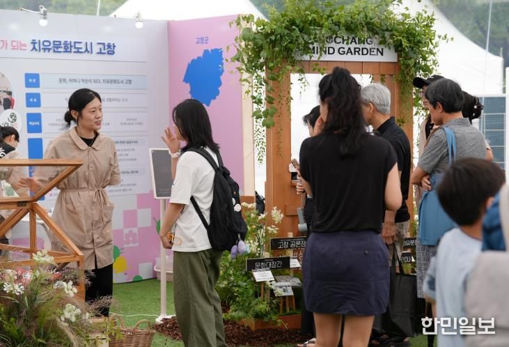 ‘함께 가꾸는 마음정원’을 주제로 고창의 자연과 세계유산이 어우러진 치유문화를 소개하며, 관람객들이 직접 참여할 수 있는 소나무 향낭 만들기 체험과 7가지 세계유산 영상 상영을 통해 고창의 문화도시 브랜드를 알렸다.