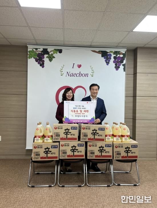 한민일보 서울포커스 심기옥 기자 | 포천도시공사는 지난 25일 내촌면 저소득 계층을 위해 150만 원 상당의 식용유 및 라면을 경기 사회복지공동모금회에 기탁하며 ‘이웃사랑 나눔릴레이 44호’에 동참했다.