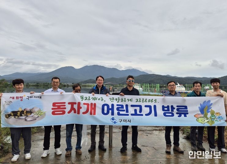 한민일보 서울포커스 김봉순 기자 | 구미시는 지난 25일 선산읍 독동리 낙동강 구미보 상류 환경감시선 선착장에서 낙동강 어업인 등이 참여한 가운데 동자개 치어 5만3천 미를 방류했다.