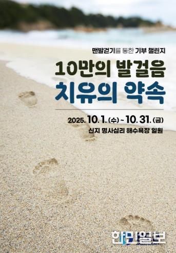한민일보 서울포커스 박용남 기자 | 완도군은 해양치유센터 이용객 10만 명과 해양기후·문화, 맨발 걷기 등 누적 치유객 50만 명 달성을 기념해 10월 1일부터 31일까지 한 달간 신지 명사십리 해수욕장 일원에서 ‘해양치유 맨발 걷기 나눔 챌린지’를 진행한다.