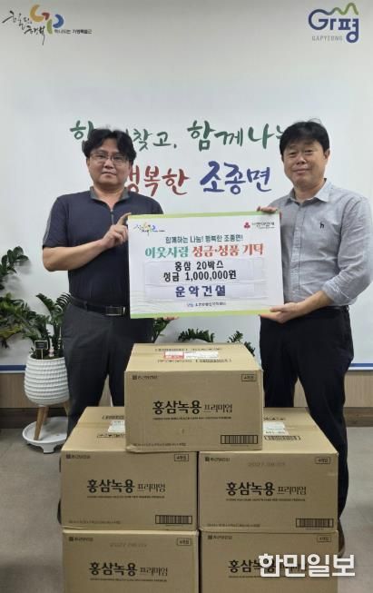 한민일보 서울포커스 최성훈 기자 | 가평군 소재 운악건설은 추석 한가위를 맞아 조종면 행정복지센터에 성금 100만원과 홍삼 20박스를 기탁하며 이웃사랑을 실천했다.