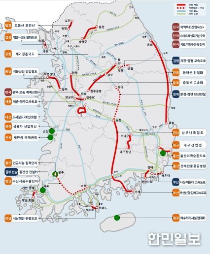 행정절차 중인 사업으로는 ▲새만금국제공항 ▲강원 제2경춘 국도 ▲충남 석문산단 인입철도 ▲세종-청주 고속도로 ▲경남 남부내륙철도 ▲대구산업선 ▲울산외곽순환도로다.
