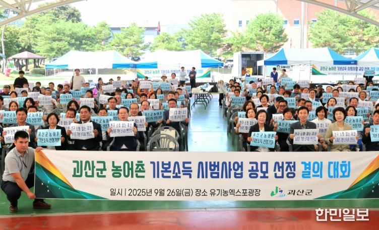 한민일보 서울포커스 김다남 기자 | 충북 괴산군은 26일 유기농엑스포 광장에서 열린 2025 괴산농심대제 행사에서 ‘농어촌 기본소득 시범사업’ 공모 선정을 위한 결의대회를 개최했다고 밝혔다.