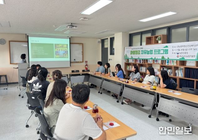 한민일보 서울포커스 박근원 기자 | 경상남도농업기술원(원장 정찬식)은 26일 경남광역정신건강복지센터에서 치유농업과 정신건강 증진사업의 연계 활성화를 위해 도내 정신건강 전문인력 15명을 대상으로 치유농업 프로그램을 시범으로 운영했다고 밝혔다.