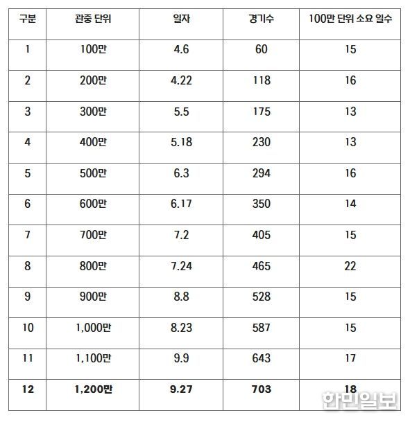한민일보 서울포커스 최성훈 기자 | 2025 신한 SOL뱅크 KBO 리그가 1,200만 관중을 달성했다.