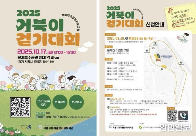 한민일보 서울포커스 유현민 기자 | 시흥시는 오는 10월 17일 오후 1시부터 은계호수공원 일대에서 장애인과 비장애인이 함께 걷고 소통하며 문화를 즐기는 ‘거북이 걷기대회’를 연다. 이번 행사는 시흥시대야종합사회복지관이 주관한다.