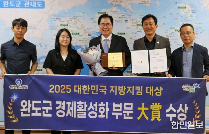 한민일보 서울포커스 박용남 기자 | 완도군은 지난 24일 서울 한국프레스센터에서 열린 ‘2025 대한민국 지방 지킴 대상’ 시상식에서 경제 활성화 부문 대상을 수상했다.