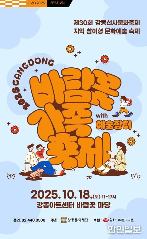 한민일보 서울포커스 박정민 기자 | 강동문화재단은 오는 10월 18일 오전 11시부터 오후 5시까지, 강동아트센터 바람꽃마당에서 '2025 강동 바람꽃 가족 축제 · 예술장터'를 개최한다고 밝혔다.