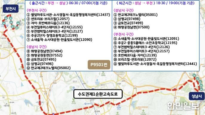 한민일보 서울포커스 김윤이 기자 | 부천시는 10월 27일부터 소사구 옥길동과 성남시 판교 업무지구를 연결하는 경기 프리미엄버스 신설 노선 ‘P9501번’을 운행한다고 밝혔다.