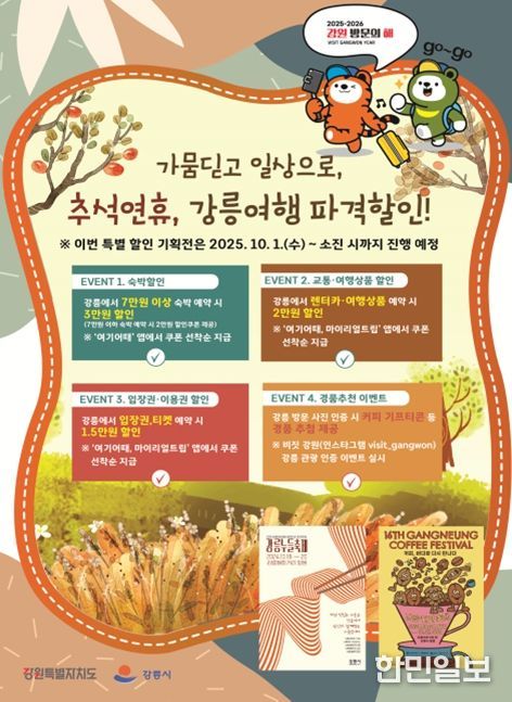 이어 10월 1일부터는 온라인 여행 플랫폼 ‘여기어때’, ‘마이리얼트립’을 통해 강릉 숙박‧여행상품 및 입장권 할인 기획전을 진행한다.