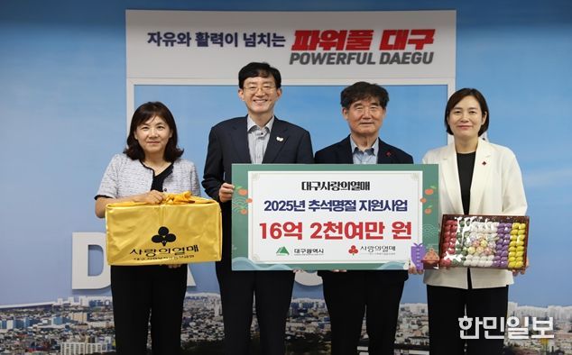 한민일보 서울포커스 김봉순 기자 | 대구광역시는 9월 29일, 대구광역시 동인청사에서 김태운 대구시 보건복지국장, 신홍식 대구사회복지공동모금회 회장 등 관계자들이 참석한 가운데 ‘2025년 추석명절 지원사업’ 전달식을 가졌다.